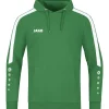 Die Baumwolle aus kontrolliert biologischem Anbau gibt dem JAKO Kapuzensweat Power einen extra weichen Griff. Der Sweat- und Ärmelabschluss sind im Ripp-Look. Des Weiteren gibt es eine aufgesetzte Tasche im Bauchbereich und einen Kontrasteinsatz in Wabenstruktur. Durch eine spezielle Vorbehandlung wird das Einlaufen des Materials verhindert. Aus Sicherheitsgründen ist bei Kindern kein Kordelzug im Kapuzensweat vorhanden.