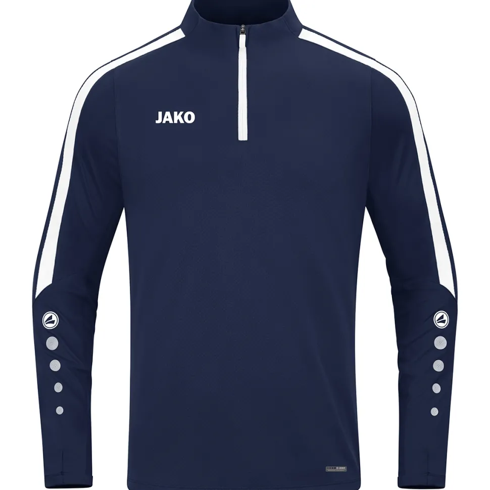Der Kontrasteinsatz in Wabenstruktur verleiht dem JAKO Ziptop Power einen dynamischen Look. Die Ärmel bestehen aus einem hochelastischem Polyester-Elasthan-Mix und verfügen über ein Daumenloch. Das Body Material ist besonders leicht und angenehm zu tragen. Die mikrofeinen Fasern transportieren Feuchtigkeit unmittelbar an die Oberfläche des Stoffes und geben Schweiß somit keine Chance.